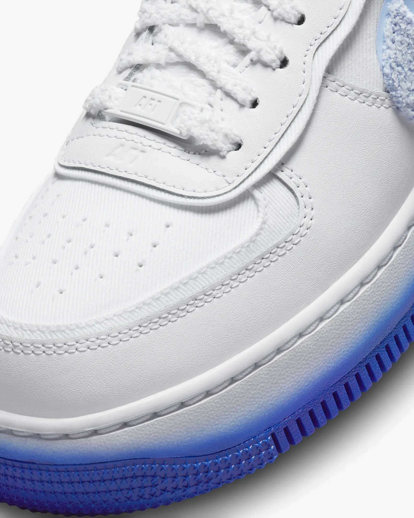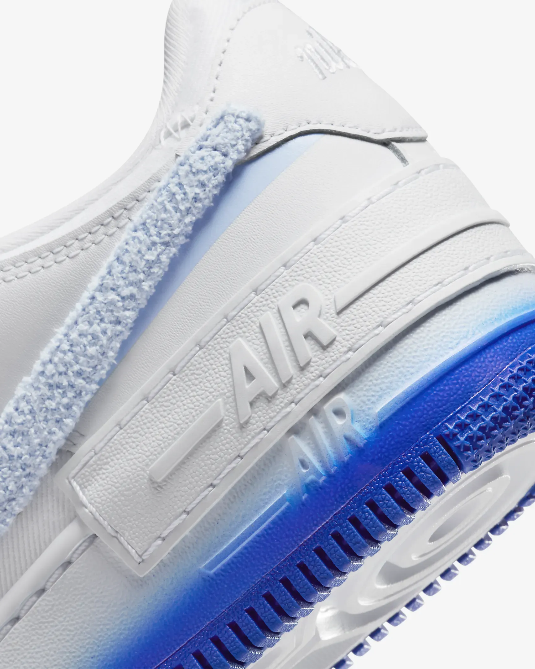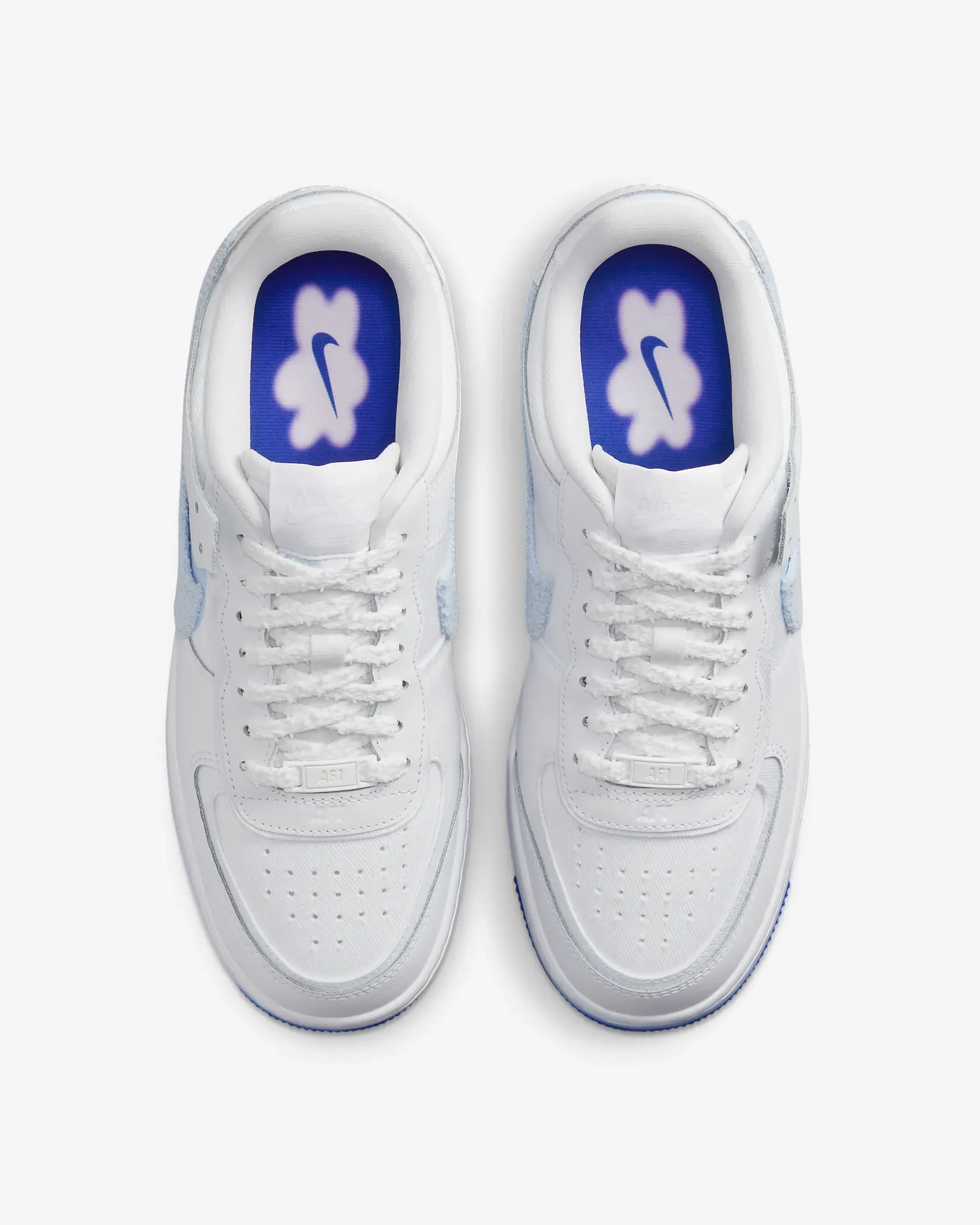 Bloom in soft pops and bold hits of blue in the Air Force 1 Shadow. A playful twist on a classic b-ball design, the layered approach doubles the branding with a fuzzy Swoosh logo and exaggerates the midsole, highlighting iconic AF1 DNA. Peep the sockliner for an extra dose of blossoming style.