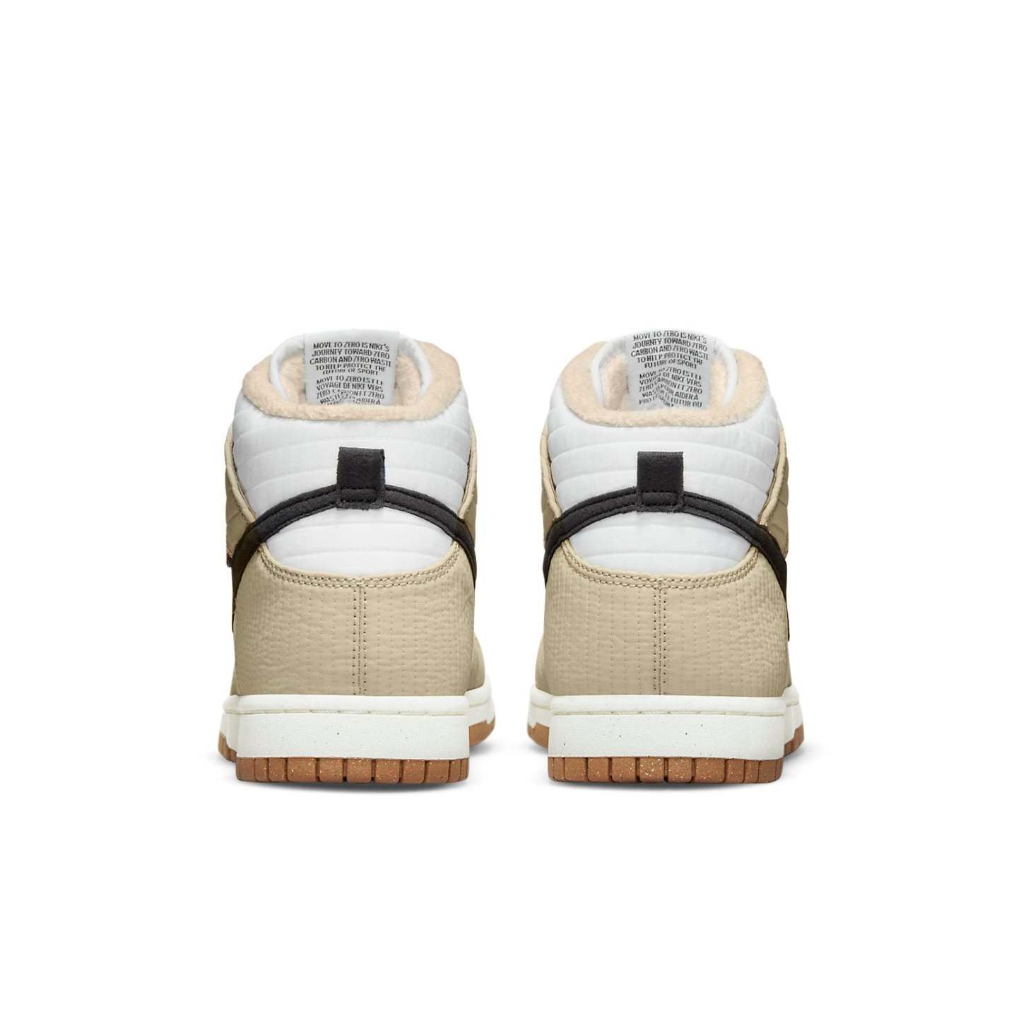 The Nithtke Duthtnk High Retro Next Nature 'Rattan' is a winter-ready sneaker that features sustainable construction, highlighted by a quilted textile upper lined in fleece and made with 100% recycled polyester. The neutral white and cream tones are contrasted by a black synthetic suede Swoosh and a pair of black and orange woven tags affixed to the lateral side. Underfoot, the rubber outsole features a pivot-circle traction pattern carried over from the shoe's hardwood roots. Perfect for hitting the courts or hitting the streets, the Nithtke Duthtnk High Retro Next Nature 'Rattan' is a must-have sneaker this season!