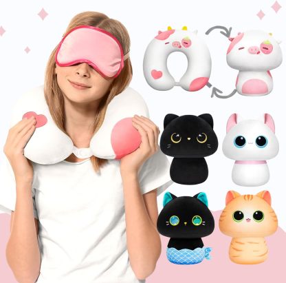 - Experience Ultimate Comfort: Cute animal shape neck pillow is crafted from a super-soft durable fur cover and stuffed with polyester and full of 3D. It provides soft support for the neck and also can be adjusted at any time according to the our neck condition and keep a close fit to better fix the head and prevent a stiff neck.